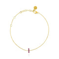 Delicate gold bracelet with three vertical rubies. Elegant, minimal, and perfect for everyday wear.
