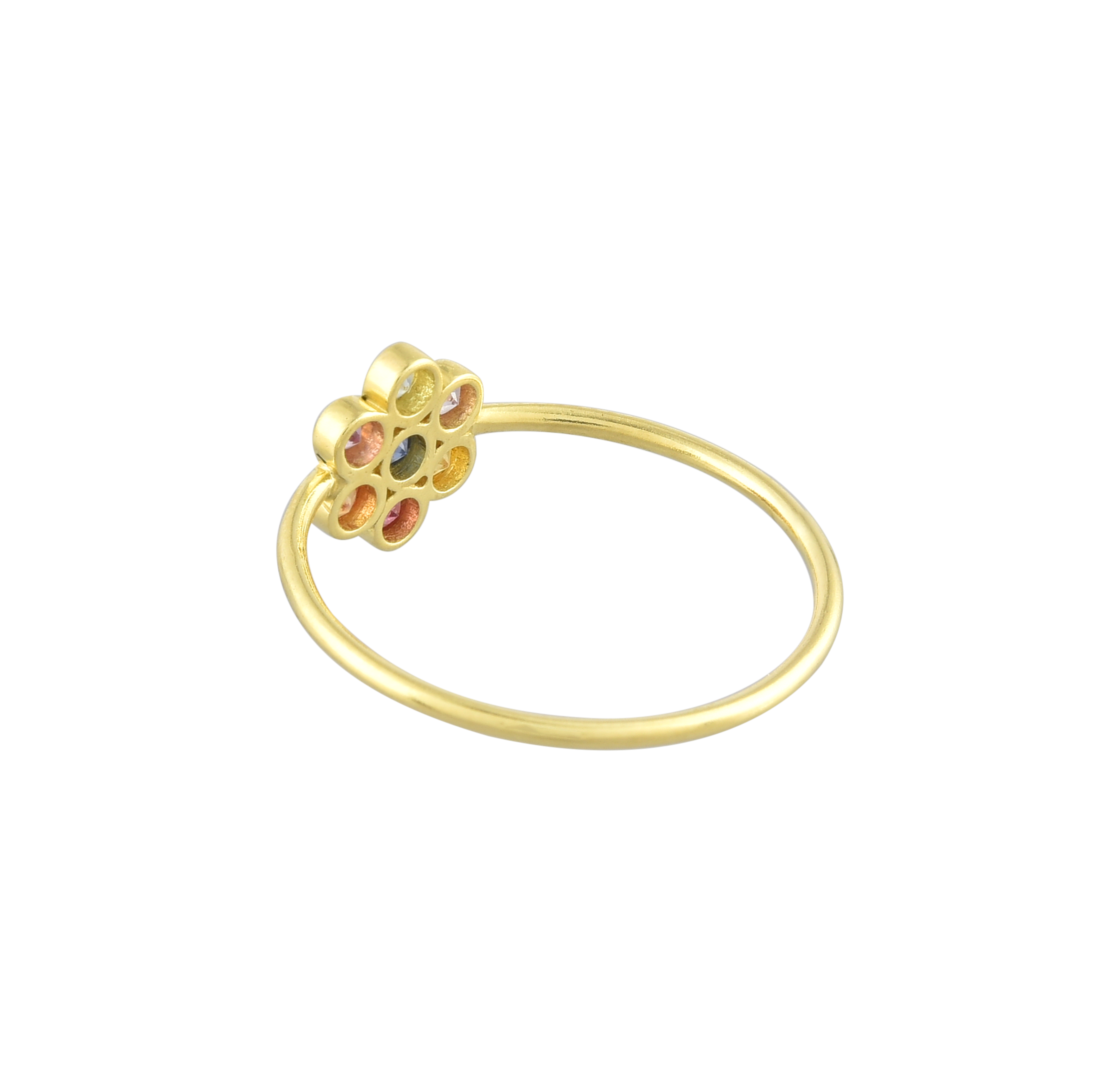 Delicate and vibrant, this ring features a stunning cluster of colorful stones set in a gold-plated band.