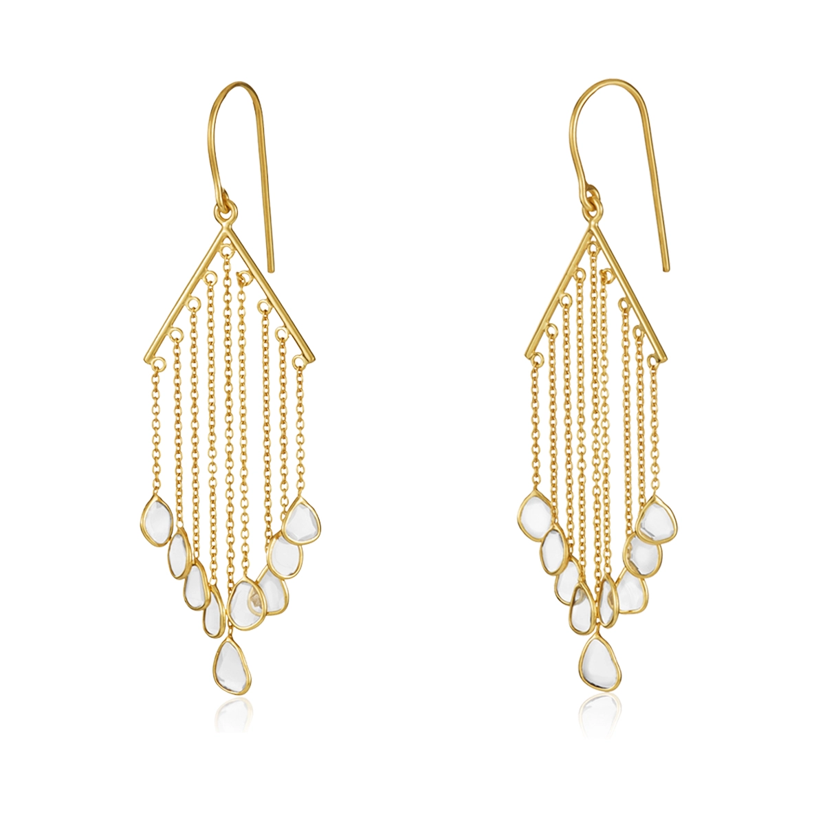 Statement danglers in gold-tone with cascading chains and uncut polki diamonds. Bold yet lightweight, perfect for special occasions.
