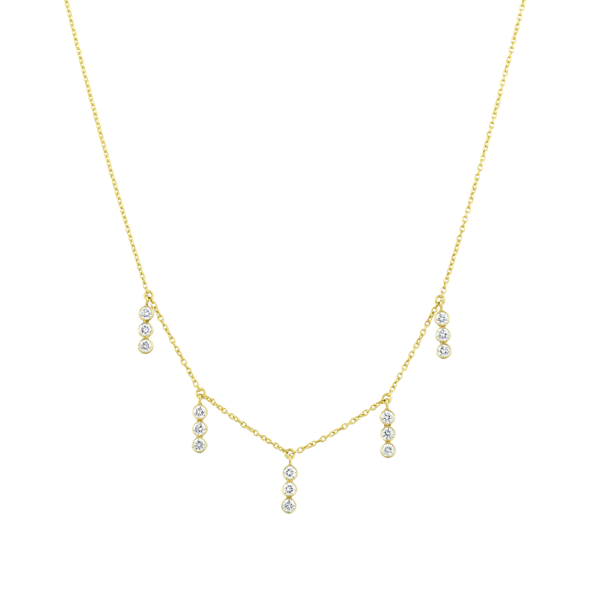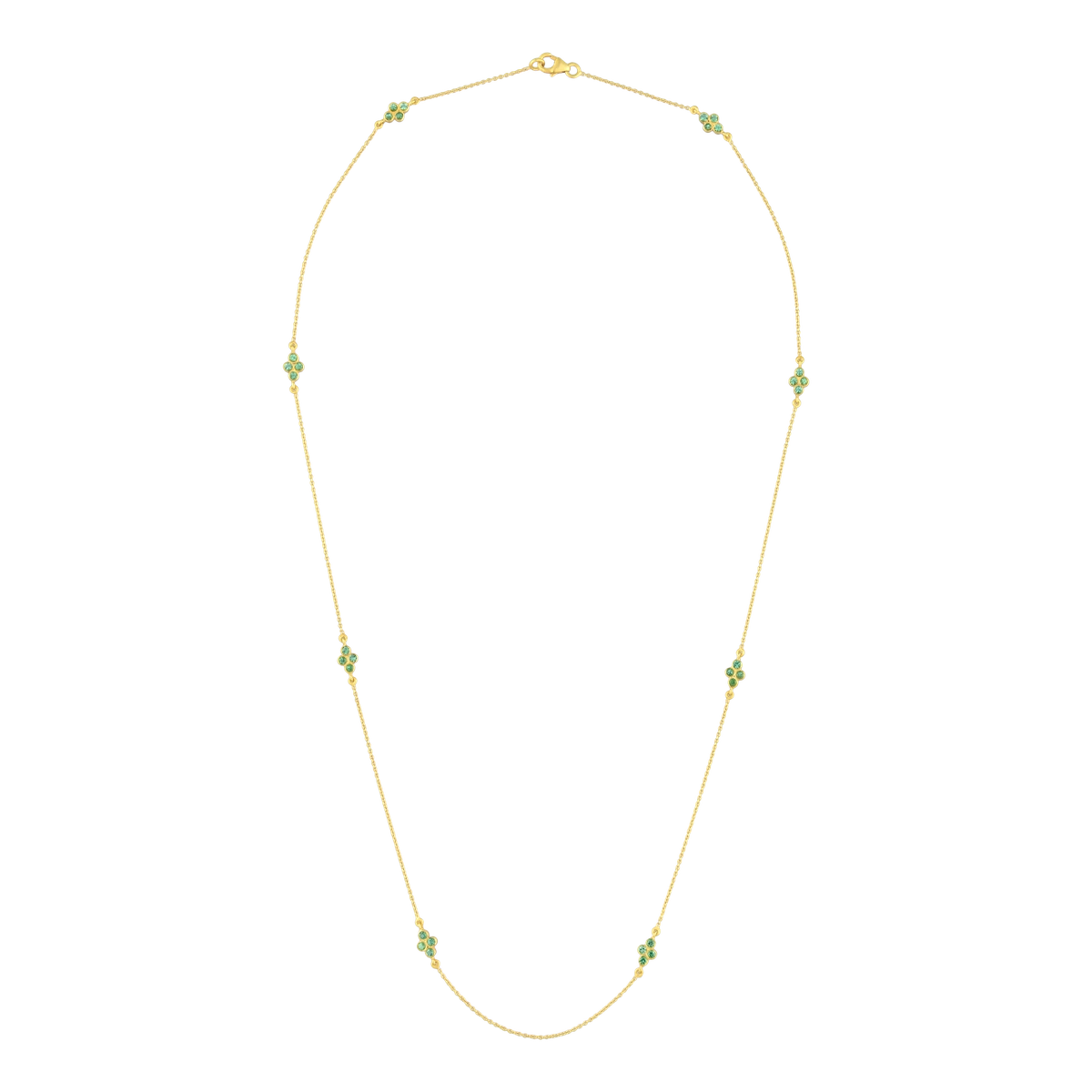 Delicate gold chain with dainty textured motifs and subtle stone accents. Lightweight elegance for everyday wear.