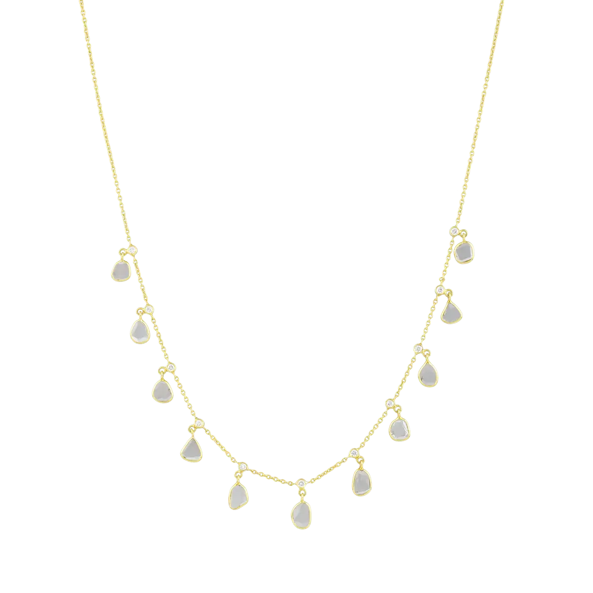 Polki Diamond Lotus Charm Gold Necklace In 18Kt