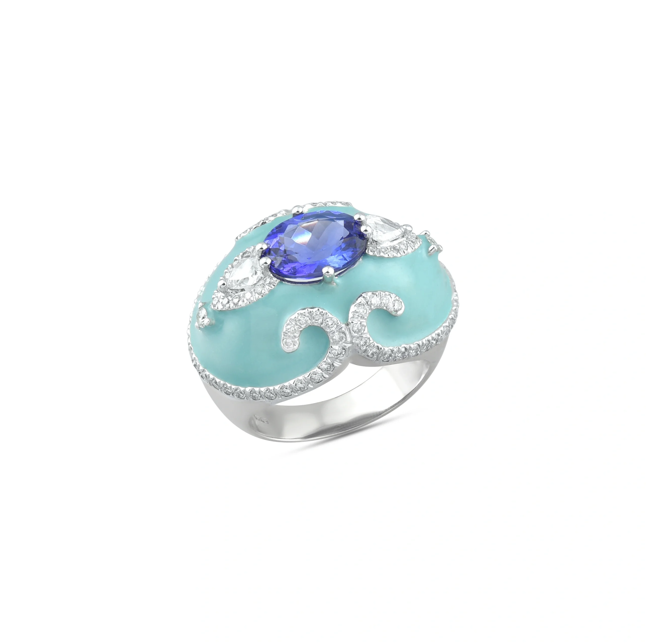 Tanzanite Enamel White Gold Ring in 18 Kt