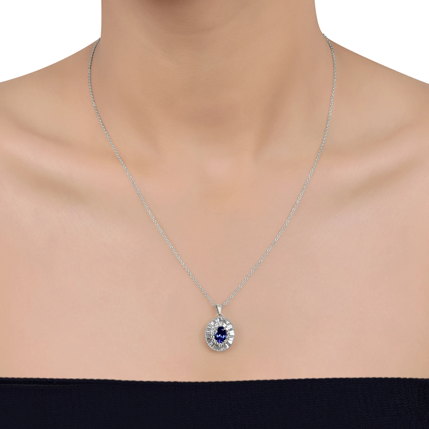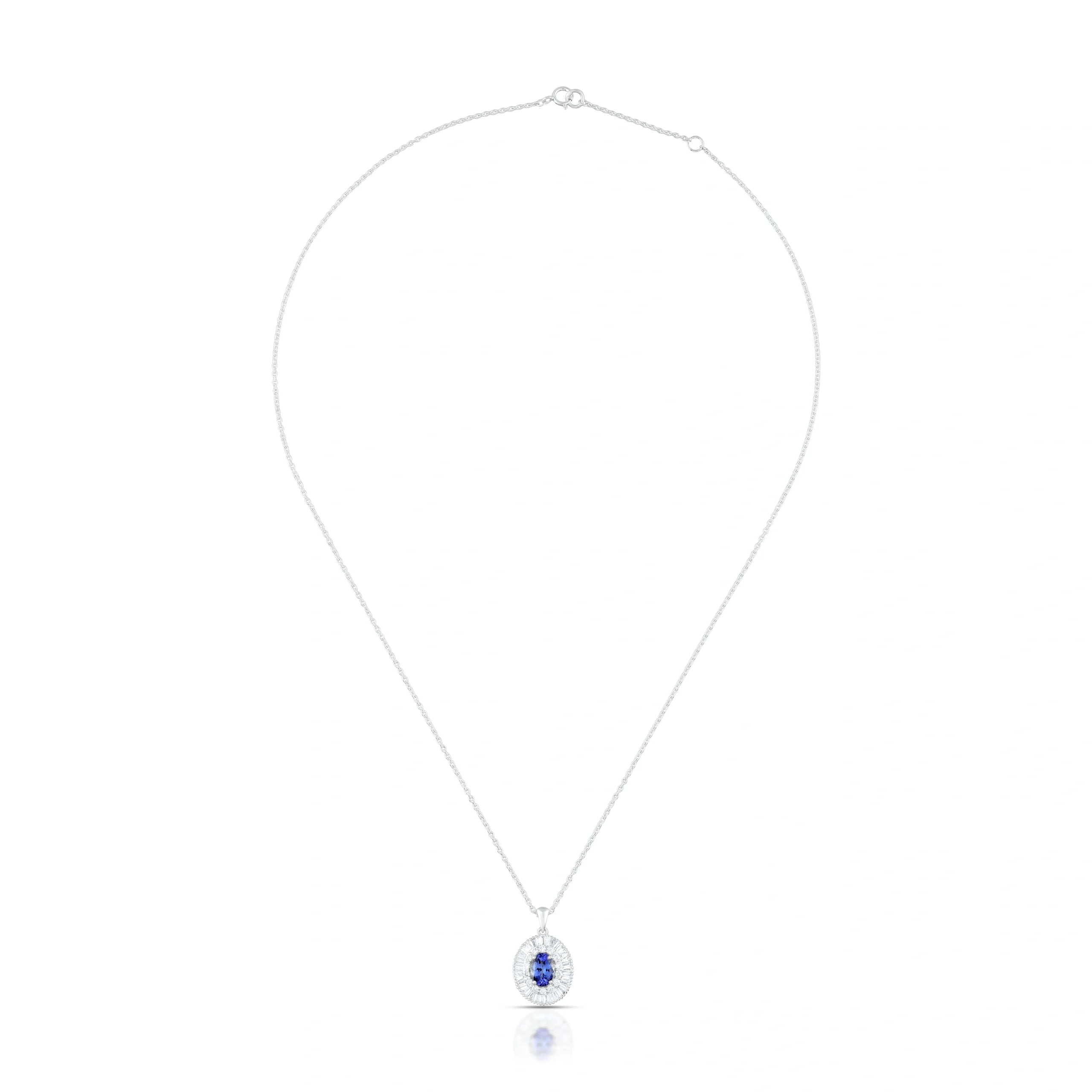 Glowing with celestial blue tanzanite surrounded by baguette-cut diamonds, this white gold necklace defines modern sophistication. Effortlessly luminous, eternally elegant.