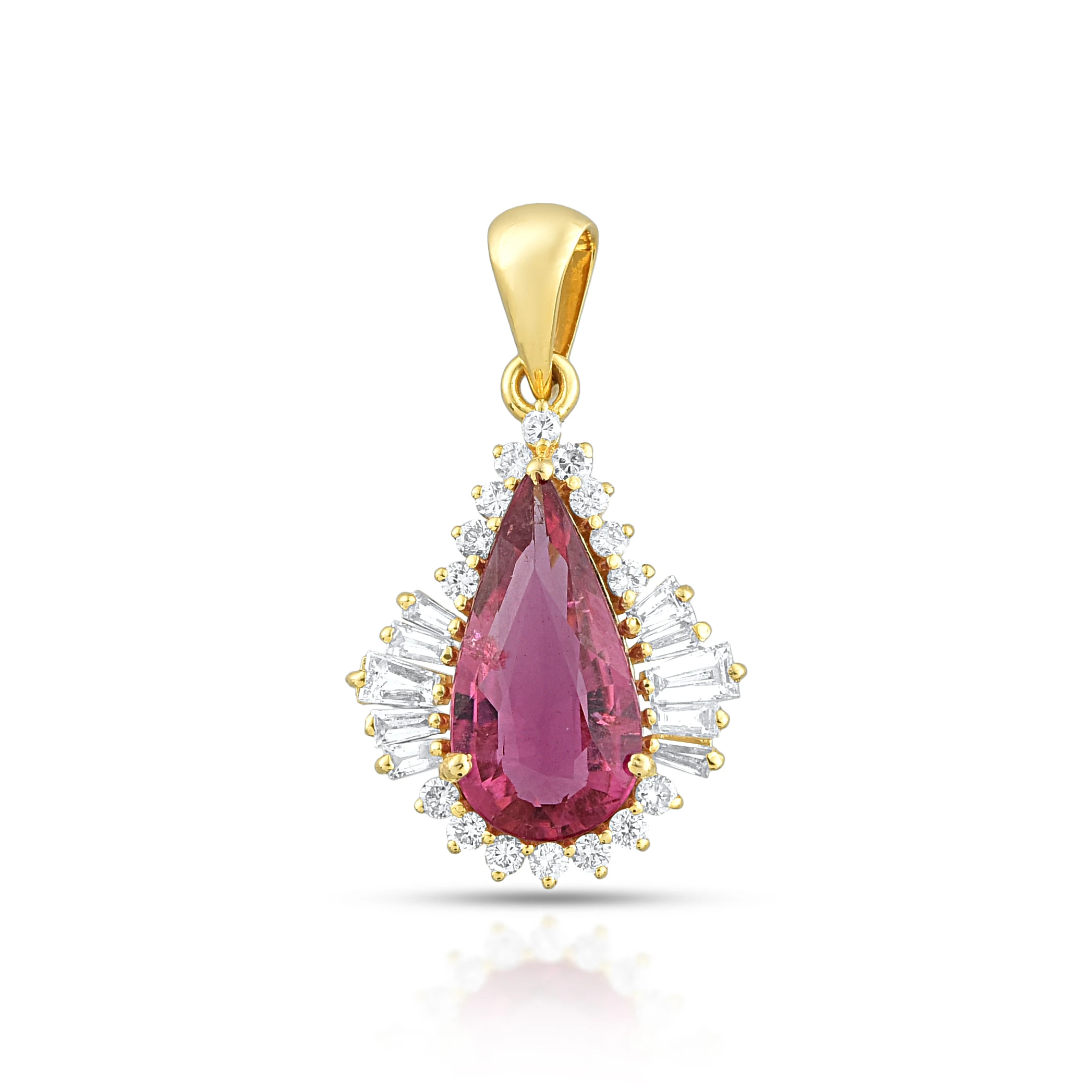 A luminous rubellite framed pendant with diamonds —pure elegance, pure power.